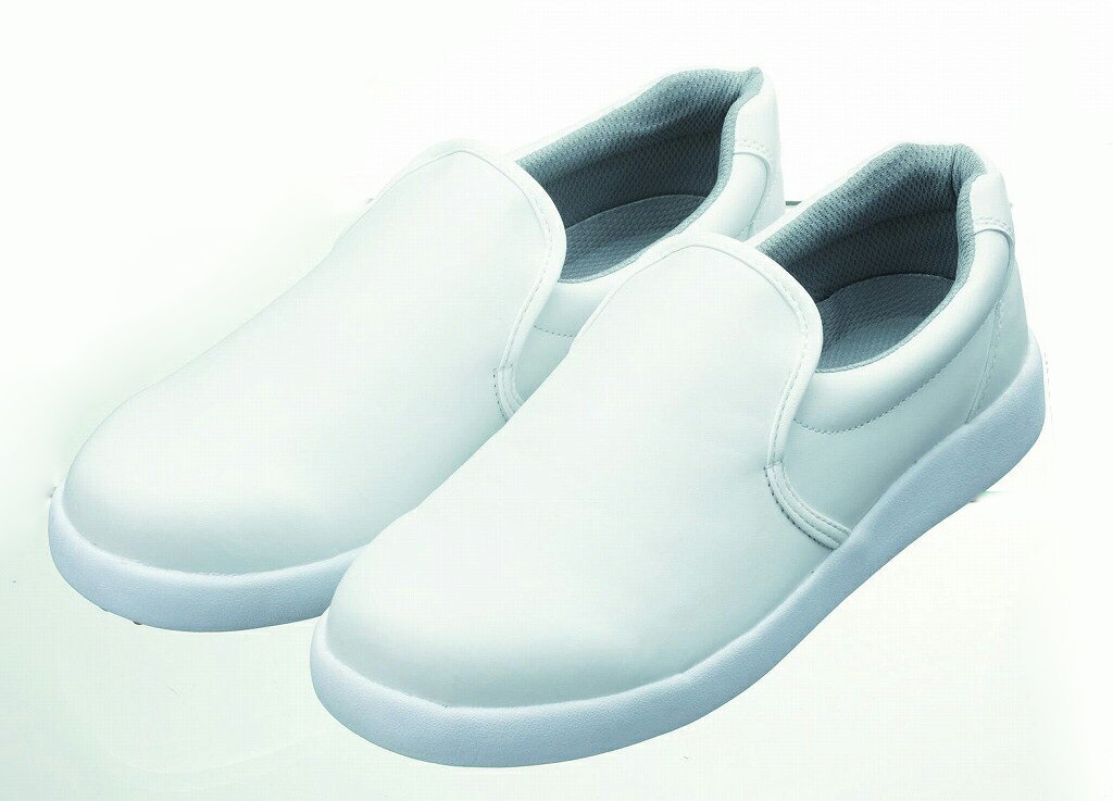 アプロンワールド 厨房用衣料 作業靴 468-60 サイズ:21.5〜30.0cm 色:ホワイト アッパー:合成皮革 ソール:ゴム底軽量約230g 3E カップインソール 通気穴により足裏の通気性を大きく向上させました(インソール裏)優れたクッション性により疲労感を大幅に軽減します。 タテ・ヨコに刻んだ凹凸底で、滑りにくさを強化。カップインソールに通気穴を設けた凹凸形状により、足との接地面積を少なくし、熱がこもりにくくしました。べったりした不快感がなく爽やかな感触が特徴です。