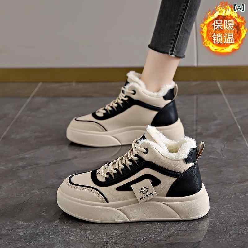 スニーカー レディース 厚底 ハイカット 暖か 防寒 ラウンドトゥ レースアップ スポーツシューズ カジュアル 日常 普段使い 黒 白 ベージュ