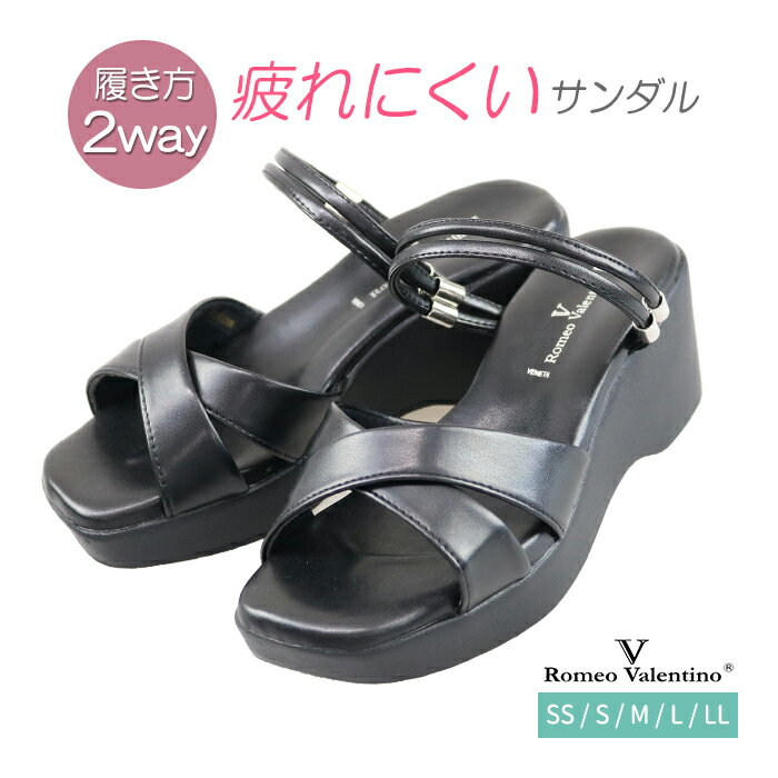 【ブラックフライデー★11/27(木)1:59まで】 サンダル レディース 疲れない きれいめ オフィス ヒール 厚底 脱げ防止 ストラップ 黒 ロメオバレンチノ Romeo Valentino 仕事 ウェッジソール 歩きやすい 痛くない 美脚 ビジネスサンダル 大人 柔らかい