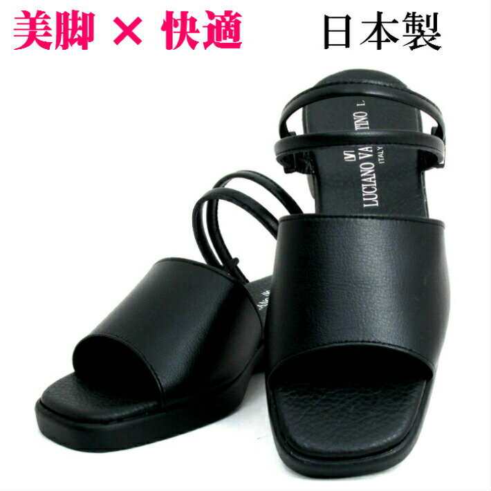サンダル レディース 22.0-25.0cm 靴 女性 オフィス ルチアノ バレンチノ LUCIANO VALENTINO 3915 3905 黒 ブラック 事務 デスクワーク 会社 快適 美脚 6.5cmヒール 日本製 高品質 イタリア発信