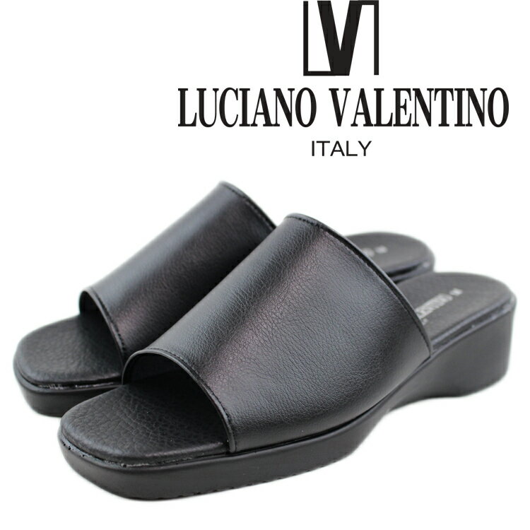 LUCIANO VALENTINO ルチアーノ バレンチノ サンダル レディース 6090 日本製 オフィスサンダル 黒 仕事 室内 会社 女性 婦人 4.5cmウエッジヒール