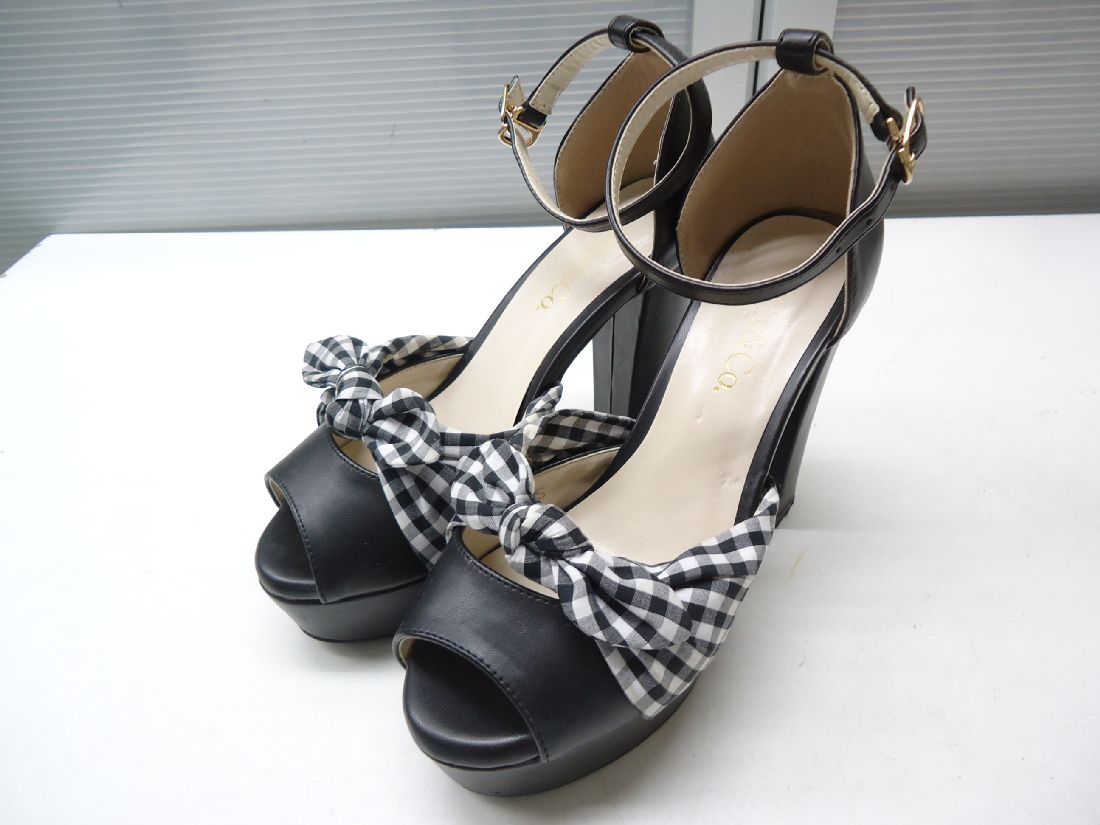 ◇配送会社について◇配送会社は、「佐川急便」、「西濃運輸」、「ゆうパック」といたします。(配送会社は、お選びいただけません)◇複数購入時の送料◇複数の商品をご購入していただいても、送料に変更はありません。(複数ご購入の場合も一足分の送料のみとなります)【メーカー】titty&co./ティティーアンドコー【商品名】ギンガムチェックサンダル【サイズ】表記サイズ S(22.5cm)実寸 ヒール高 約10.5cm ストーム高 約3.0cm【色】BLK/ブラック【素材】合成皮革/綿100%【状態】多少の汚れ、傷が見られますが、使用に問題はありません◎※多少見落としがある場合がございます。ご理解ご了承くださいませ。【商品説明】しっかりと支えてくれる太めのヒール&アンクルストラップ付きで、歩きやすさは抜群です◎素足でそのまま履くのはもちろん、ソックスと合わせてアレンジを楽しむのもオススメ♪