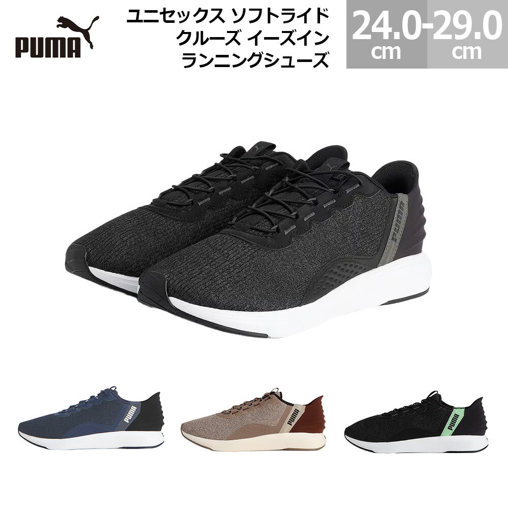 プーマ スニーカー ユニセックス ソフトライド クルーズ イーズイン ランニングシューズ PUMA レディース メンズ ブラック/グレー(01) ネイビー/ブラック(02) トープ/ブラウン(03) ブラック/グリーン(04) 24.0cm-29.0cm 311997 脱ぎ履きラクラク