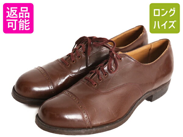 【11/23 48h限定555円OFF×P5倍!】 デッドストック 30s AIR-O-ARCH パンチド キャップトゥ レザー シューズ US 9 27cm 30年代 ヴィンテージ 革靴 外羽根 ストレートチップ 茶| 新品 未使用 デッド 30's USA製 アメリカ製 レザーシューズ 本革レザー オックスフォード ドレス