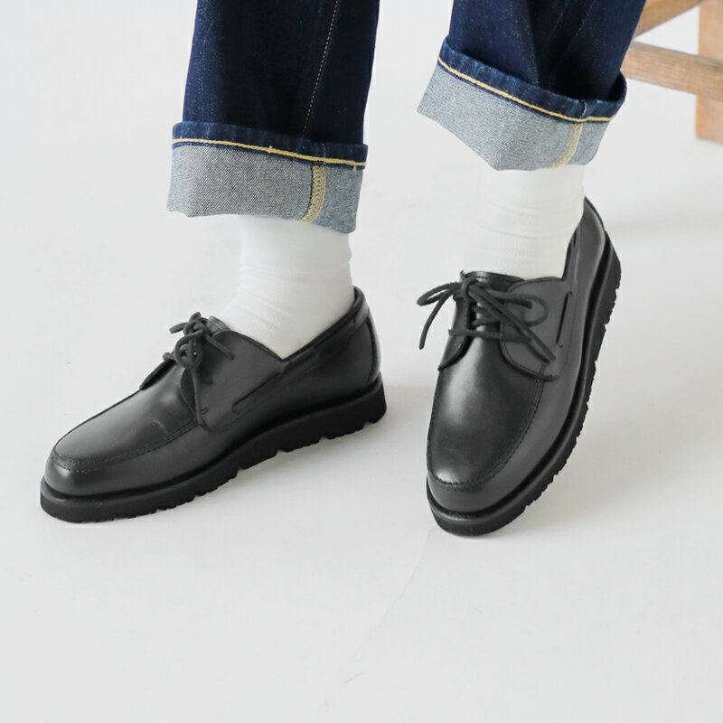 メーカー希望小売価格はメーカー商品タグに基づいて掲載しています 商品カテゴリー【ブラック】 【23.0cm】【23.5cm】【24.0cm】【24.5cm】SHADDY(シャディ)ベジタブルタンニンレザーレースアップシューズsh066 SHADDY(シャディ) イタリアのデザインをインドネシアで生産することにより抜群のコストパフォーマンスを誇りまた生産・素材調達に関してもその道のプロフェッショナルが隅々までチェックすることにより高品質のシューズを数多く発表しています。ソフトレザーを多用し足あたりの良いコレクションは現地で高い人気を誇り、海外への輸出も順調に伸ばしています。 SHADDY 一覧はこちら 上品な大人の足元を飾る、飽きの来ないレースアップシューズ。 SHADDY(シャディ)より、ベジタブルタンニンレザー レースアップ シューズのご紹介です。何にでも合わせやすく履きやすい、使い勝手の良いレザーシューズ。上質な革で作られたクラシックなシルエットも魅力的。しっかりとしたラバーソールで安定感も抜群。カジュアル、オケージョン、どちらにも合わせやすく様々なスタイリングに重宝します。 安定感のあるスタイリッシュなフォルムが特徴です。流行に左右されることなく、飽きがこずに履き続けられます。 美しいベジタブルタンニンレザー ベジタブルタンニンレザーは、植物のタンニンを使ってなめされた自然由来の本格レザー。風合い豊かで、使い込むほどに美しく育つのが特徴です。きめ細やかなシボが上品な雰囲気です。 しっかりとしたラバーソールで安定感も抜群。 靴下とのスタイリングを考えるのも楽しい一足。パンツ、スカート、どちらにも合わせやすく、1足あるととても重宝します。 程よいクッション性のあるインソール。 SIZE size(cm) ヒール 幅 37(23.5cm) 2.5 9 → サイズガイドはこちら country: インドネシア製 fabric: アッパー/天然皮革ソール/ラバー weigth: 約205g(サイズ37(23.5cm)計測) 注意事項: お手入れ方法については、必ず事前にお問い合わせください。 → 洗濯表示について STAFF VOICE ▼model:asuka 身長:160cm/体重:48kg/靴のサイズ:23.5cm 着用サイズ:37(23.5cm) 普通の厚さの靴下を履いて37(23.5cm)を着用しました。サイズ感は全体的にジャストサイズでした。しっかりと足を包んでくれて、歩きやすい履き心地でした。レザーが柔らかく、見た目よりも軽量で、長時間のお出かけにも役立ちそうです。 → モデルサイズ詳細へ