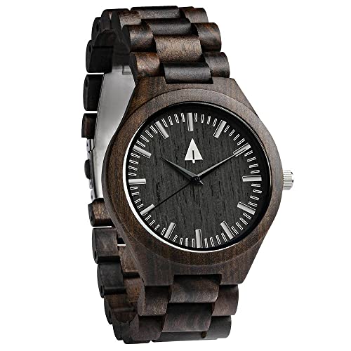 【中古】【未使用・未開封品】TreehutメンズブラックエボニーWooden Watch withすべて木製ストラップクォーツアナログwith品質Miyota Movement andステンレススチールtri-fold