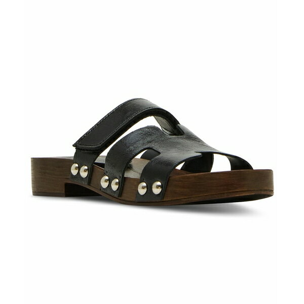 スティーブ マデン レディース シューズ サンダル プラットフォーム Steve Madden Women's Canal Wooden Platform Slide Sandals Black Crinkle Patent ブラック