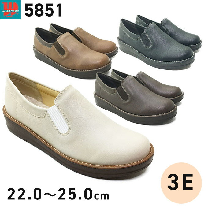 カジュアルシューズ レディース Wilson Lee 5851 ウィルソン・リー スリッポン BL/BL DBR/OAK CA/DBR IV/IV 22.0~25.0cm 軽量 幅広 3E 低反発インソール サイドゴア ソフトな中敷 滑りにくい 女性 婦人