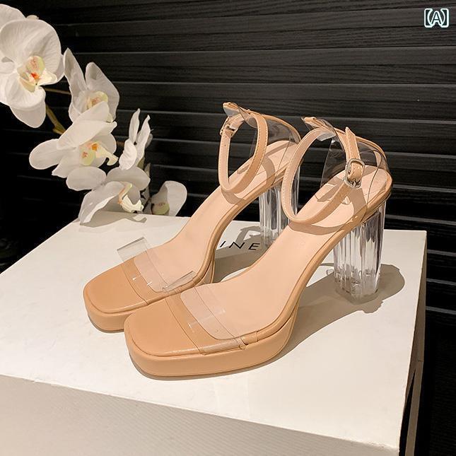 レディース ヒール おしゃれ 2025夏の ワン ストラップ 防水の ある 靴 底 透明 ハイヒール レディース クリスタル 厚底 フレンチ スリム サンダル