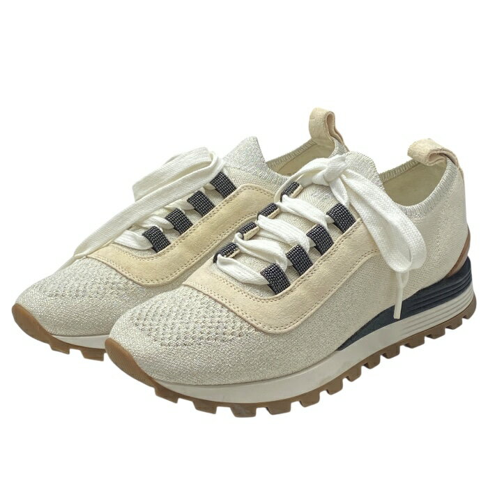 ブルネロクチネリ DW5210839 ニット スニーカー レースアップ ロゴ アイボリー ベージュ レザー [サイズ35(約22cm)] BRUNELLO CUCINELLI レディース 人気 定番 上品 高級感 旬デザイン