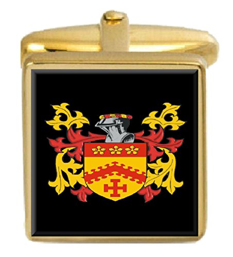 【中古】【未使用・未開封品】選択ギフトPegge England家紋Surname Coat of ArmsゴールドCufflinks Engravedボックス