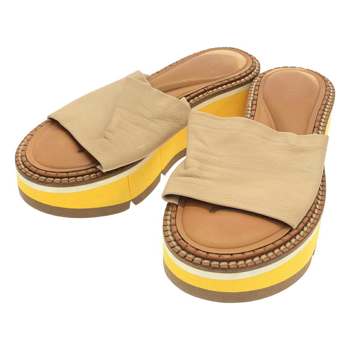 CLERGERIE クレジュリー プラットフォームサンダル 5537 イエロー×ブラウン 36 【中古】 ITNBLRIRUE3E