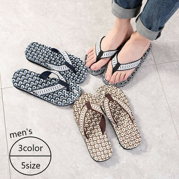 送料無料 サンダル ビーチサンダル メンズ 男性 靴 シューズ フラット フラップサンダル 総柄 ドット 渦巻き ブルー ブラック カジュアル かっこいい クール 和風 海 プール 春 夏