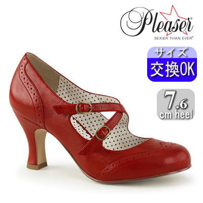 Pleaser プリーザー ローヒール パンプス 7.5cm ヒール 低め 赤 レッド 合皮 フェイクレザー 大きいサイズ 小さいサイズ レディース メンズ キトンヒール クロスストラップ 衣装 仮装 女装 コスプレ 靴 シューズ 23cm 24cm 25cm 26cm 27cm 28cm FLAPPER-35 FLAP35/RPU 取寄