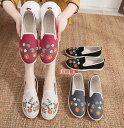 レディース パンプス 中華靴 チャイナサンダル 漢服靴 ローファー 刺繍スリーパー チャイナシューズ フラット 森ガールシューズ 可愛い 民族風カジュアルシューズ 履きやすい 防臭通気性優れ 唐装漢服コスプレ 婦人用 古典舞踊 ダンス スニーカー 春 夏 秋 3色 22cm-25cm