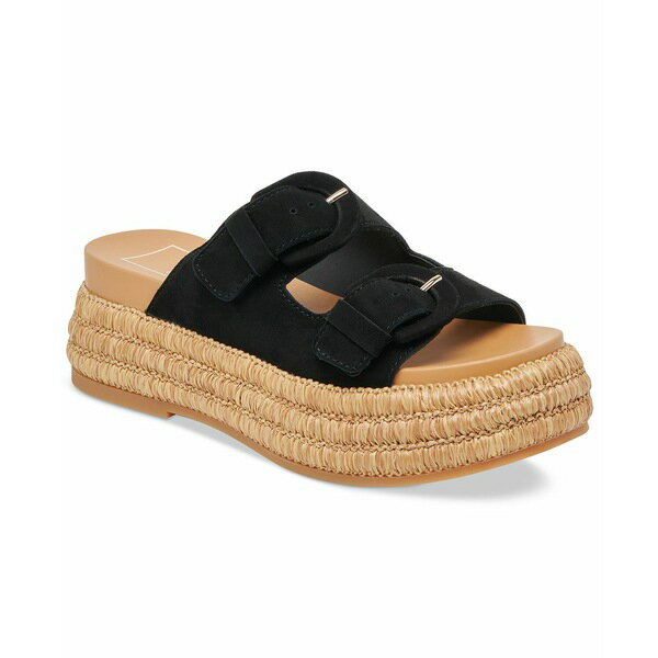ドルチェヴィータ レディース サンダル シューズ Women's Witny Double-Buckle Raffia Platform Footbed Sandals Onyx Suede