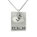 【中古】【未使用・未開封品】Forever Since???カスタマイズハートと長方形型チャームネックレス。マット仕上げ。カスタマイズwithイニシャルや日付。スターリングシルバー