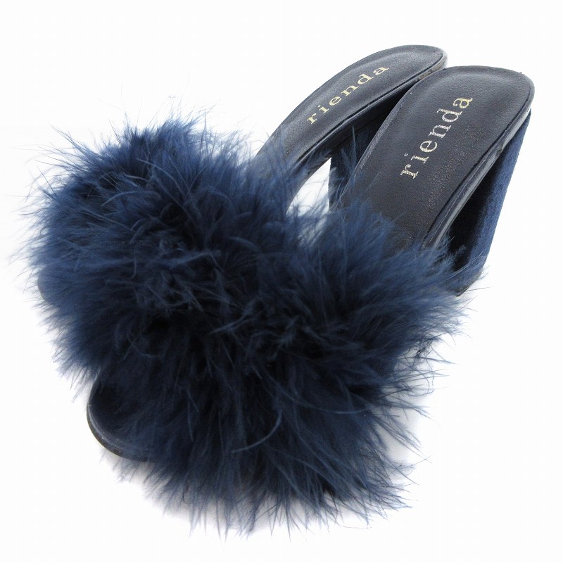 【中古】リエンダ rienda 17AW ミュール サンダル フェイクファー チャンキーヒール S 青 ブルー /JS レディース 【ベクトル 古着】 250624