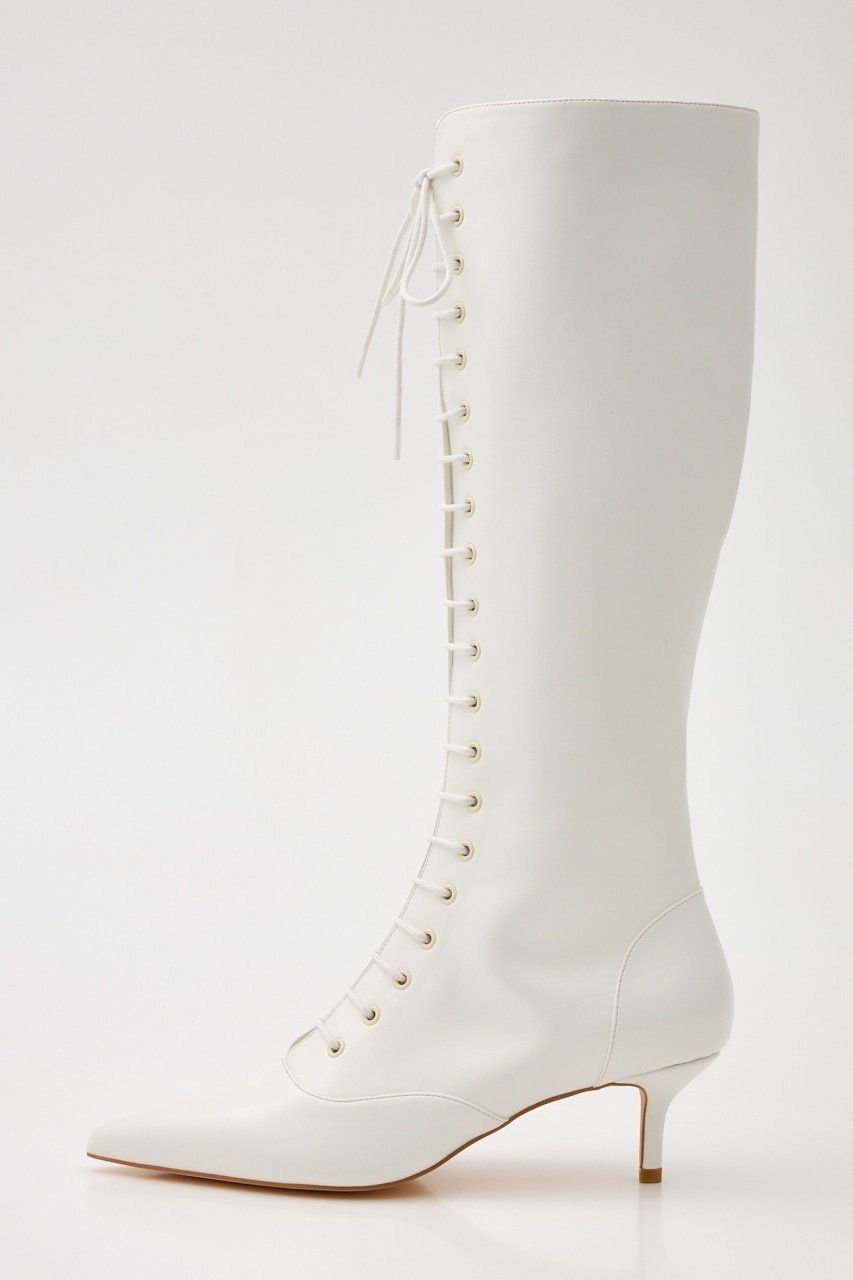 【SALE/50%OFF】rienda フロントレースアップロングブーツ リエンダ シューズ・靴 ブーツ ホワイト ブラック【送料無料】