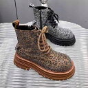 |  ブーツ レディース 厚底 水钻 ヒョウ柄 ショートブーツ 秋冬 ローヒール ぺたんこ ワークブーツ レースアップ ラウンドトゥ 履きやすい 歩きやすい かわいい スエード 普段使い