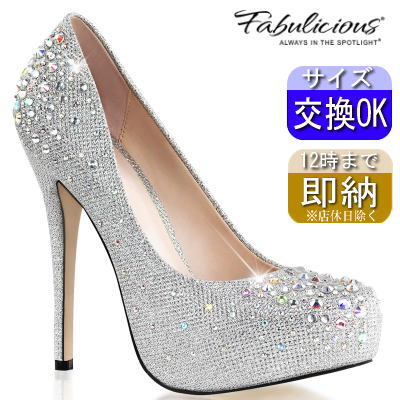 プリーザー ハイヒール パンプス 厚底 5インチ ヒール シルバー ビジュー キラキラ ピンヒール ヒール 高い 高め ステージ キャバ 社交 ダンス 用 レディース 靴 大きい サイズ プリーザーヒール Pleaser 公式 DESTINY-06R DEST06R/SGFA【Pleaser/プリーザー|コンテスト用ヒール】Pleaser(プリーザー)は1993年の創立以来、世界110ヶ国で販売実績のあるアメリカのシューズメーカーです。プリーザーのクリアヒールは美脚効果が抜群で、ビキニフィットネス等の大会でコンテストヒールとして愛用されています。【人気商品】クリアサンダル|クリアヒールサンダル|クリアストラップサンダル|【安心の公式ショップ】当店の商品は米国のPleaser本社との直接取引により輸入しております。ご安心してご利用下さい。商品説明 ■ブランド:Fabulicious by PLEASER USA ■商品名:パンプス ■色 : シルバー ■ヒール高 : 5インチ /約12.7cm ■ストーム高 : 1インチ /約2.5cm ■その他:全体にビジューをあしらったキラキラデザインです。 ■推奨シーン: 舞台 / ステージ / イベント / モデル /各種撮影 ■ご留意 ・輸入(長距離輸送)品の為、外箱に多少の欠損がある場合があります。 ・製造時に生じる些細な傷等は良品とさせて頂きます。 ・汗や湿気等により靴下等へ色移りする場合があります。 ・化学繊維部等は着用により毛玉が生じる場合があります。 ・色具合/質感が異なって見えている場合があります。 ・仕様変更により細部が異なる場合があります。 ・出荷後の受取り拒否/長期不在によるご返品の場合、送料実費分の請求とさせて頂きます。 【お取り寄せについて】 税関等の諸事情により入荷が1週間程度遅れる場合がございます。 また、メーカーの在庫変動(欠品)により、メーカー発注後に未入荷となる場合がございます。 その場合、確認次第ご連絡の上 キャンセル させて頂く場合がありますのでご了承の程お願い致します。 商品タイトル プリーザー ハイヒール パンプス 厚底 5インチ ヒール シルバー ビジュー キラキラ ピンヒール ヒール 高い 高め ステージ キャバ 社交 ダンス 用 レディース 靴 大きい サイズ プリーザーヒール Pleaser 公式 DESTINY-06R DEST06R/SGFA