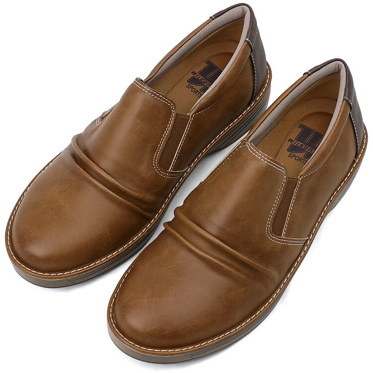 【楽天スーパーSALE】送料無料 Wilson Lee SPORTS ウイルソンリースポーツ スリッポン キャメル/ダークブラウン カジュアルシューズ ウォーキングシューズ コンフォート サイドゴア 4E 幅広 外反母趾 軽量 軽い 屈曲 防滑 歩きやすい