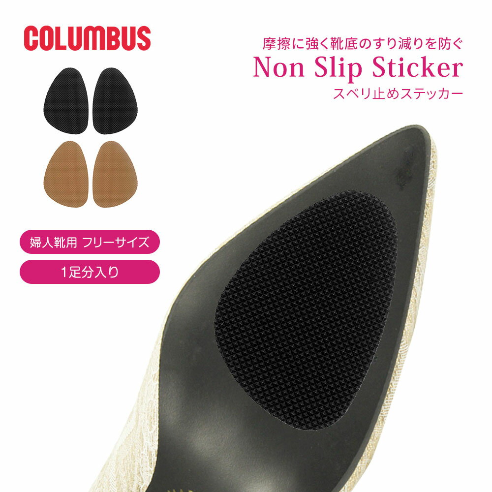 コロンブス 本革底婦人靴の滑り止め ノンスリップステッカー 婦人靴用 革底用 フラット底用 靴の滑り止め ステッカー レディース 婦人靴用 パンプス用 革靴 靴底のすり減りを防ぐ 滑り予防 防滑 スベリ止めステッカー 黒 ベージュ フリーサイズ