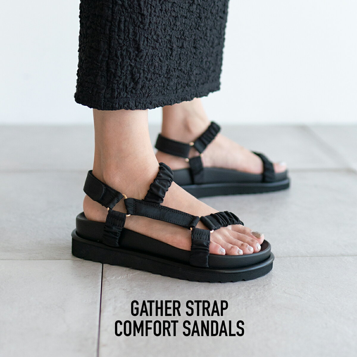 ギャザーストラップ サンダル コンフォートサンダル フットベッド レディース スポーツサンダル 厚底 ベルクロ マジックテープ ブラック 黒 20代 30代 40代 プレゼント 軽量 軽い 旅行 女性 送料無料 アイニード ineedmoreshoes 【luca】