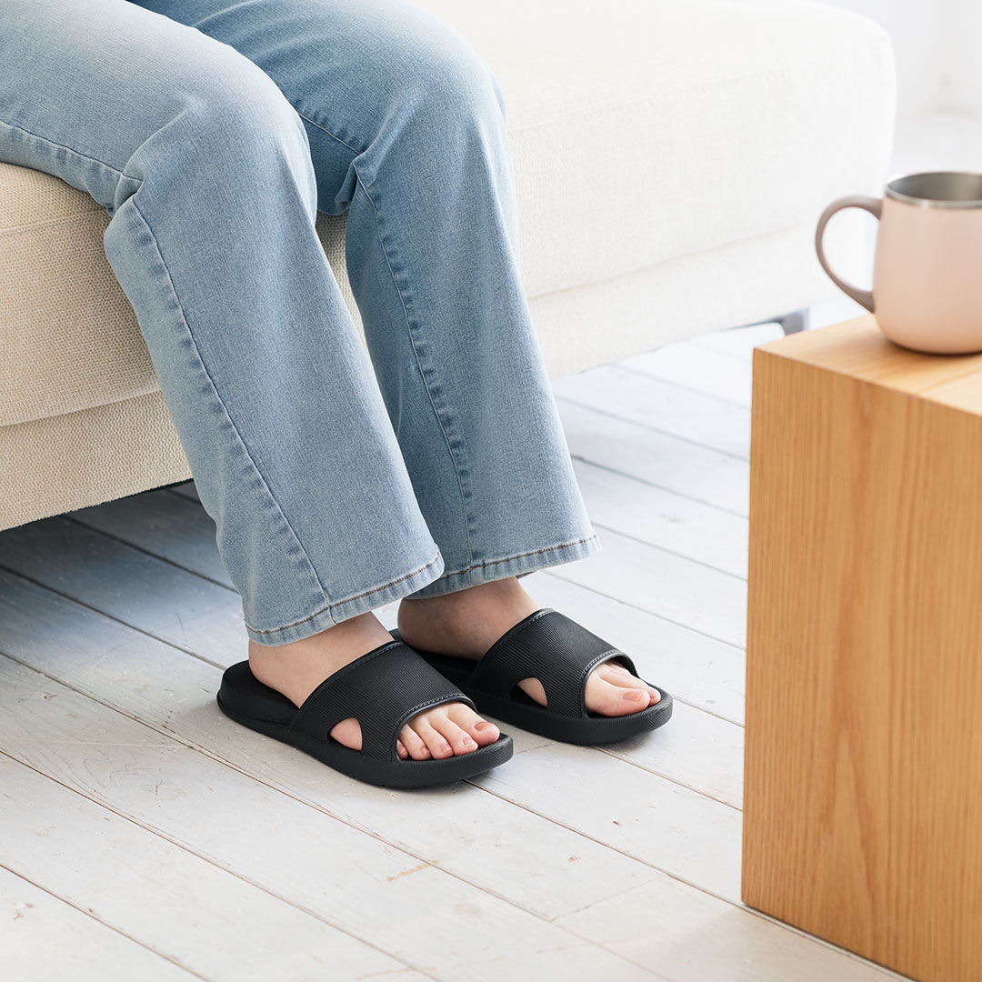 【KEYUCA公式店】ケユカ 抗菌防臭 弾むコンフォートサンダル ブラック[室内 室外 洗える 水洗い 前開き 無地 シンプル おしゃれ サンダル レディース つっかけ 軽量 外履き 夏用 ルーム 夏 ベランダ ルームサンダル ルームシューズ evaサンダル 屋外 靴 玄関 クッション]