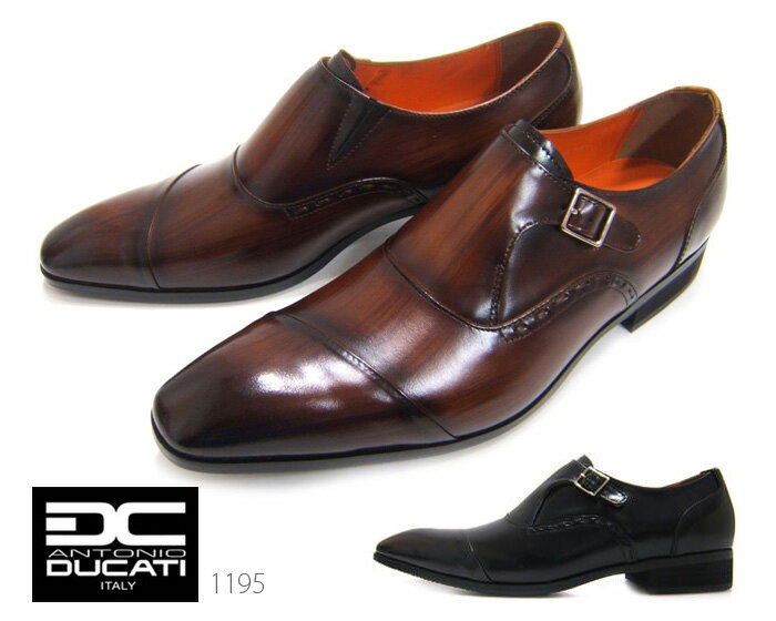 アントニオドゥカティ ANTONIO DUCATI メンズビジネスシューズ 変形ストレートチップ ベルトモンク ブラック ダークブラウン 本革 3E 靴 1195