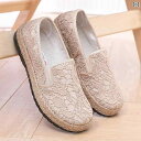マザー シューズ カジュアル 漁師の 靴 春の 婦人 快適で 通気性の ある シングル シューズ 綿 麻の な 古風 布の