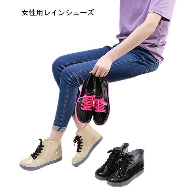 【送料無料】レインブーツ レディース レインシューズ 無地 軽量 ミドル丈 レースアップ 防水 防滑 滑り止め付き 晴雨兼用 柔らかい 滑りにくい 歩きやすい 履きやすい 梅雨対策 シンプル 春夏 雨具 雨靴 雨よけ 通学 通勤 女性用 長靴 アウトドア レインウェア