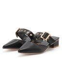 フェイクレザー ポインテッド スタッズ ミュール サンダル 女性 レディース 靴 シューズ パンプス 春 夏 楽ちん チャンキーヒール ローヒール 単色 無地 辛口 合皮 マット きれいめ エッジィ 上品 大人 エレガント オンコーデ