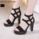 サンダル ハイヒール ヒール14cm 太ヒール 小さいサイズ レディース ブラック 大きいサイズ 靴 女性 大人 春夏 さんだる ブラック
