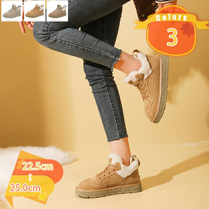 スニーカー 冬用 カジュアル 通勤 防寒靴 裏起毛 防水 ハイカット 防寒 裏起毛 スノーブーツ レディース スニーカー 裏ボア レースアップシューズ もこもこ 歩きやすい ムートン ファー ボア ショートブーツ 編み上げ くつ 靴 シューズ レディース ムートンブーツ