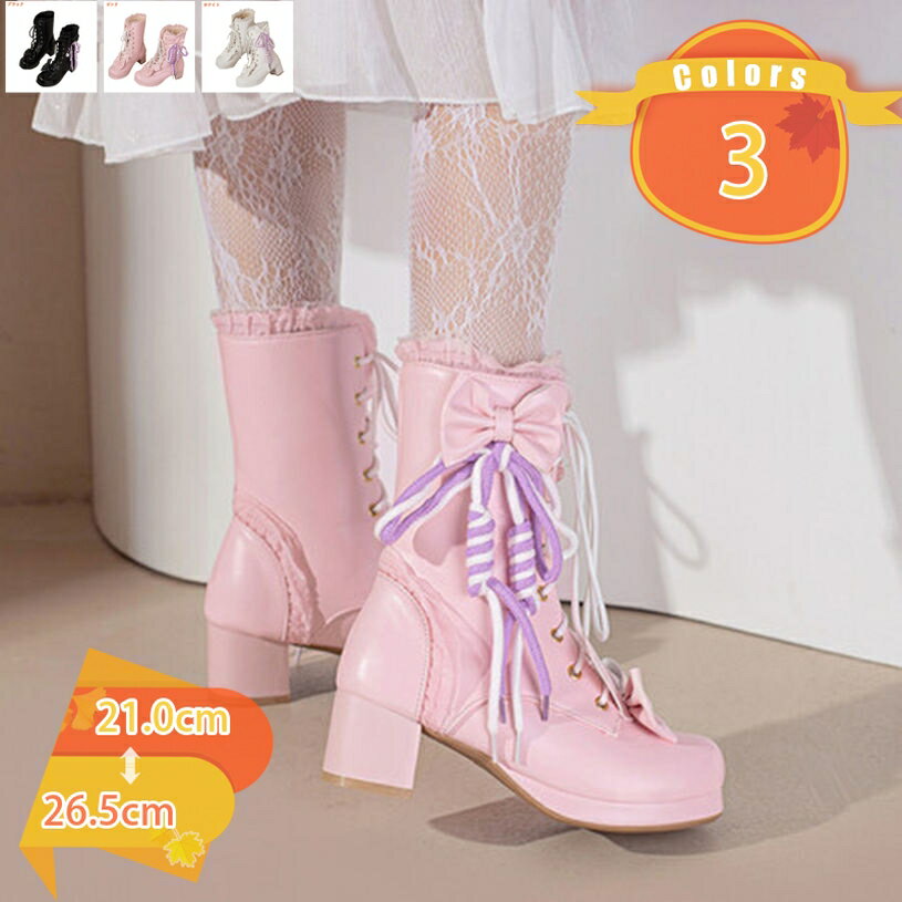 500円OFFクーポン ブーツ ブーティー レディース ロリータ靴 女の子 可愛い アンクルブーツ 編み上げ ブーツ レディース スノーブーツ 厚底アンクルブーツ 靴 厚底 PUレザー 厚底ブーツ 太ヒー ブーツ 防水 仕事 レジャー おしゃれ fascimo