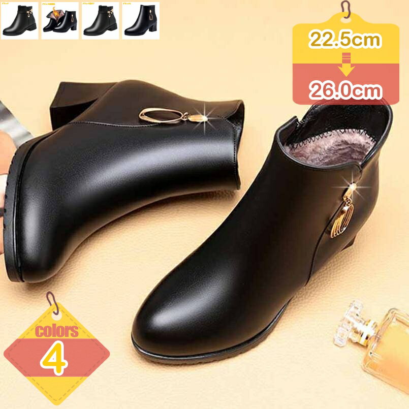 レディース ショートブーツ 秋冬 黒 革 ハイヒール 作業 靴 ベルベットの プロ レディースレザー シューズ ショート ブーツ ワークウェア コットン レディースシューズ レディース 秋冬