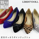 パンプス ローヒール リボン 痛くない バレエシューズ ぺたんこ 疲れない おしゃれ ポインテッドトゥ レザー スエード 合成皮革 フラットシューズ ビジネス ビジネスシューズ 22-25cm リバティードール No.5419