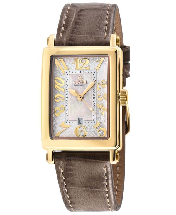 ジェビル レディース アクセサリー 腕時計 ミニ レザー Gevril Women's Avenue of Americas Mini Swiss Quartz Brown Italian Leather Strap Watch 25mm x 32mm Gold ゴールド