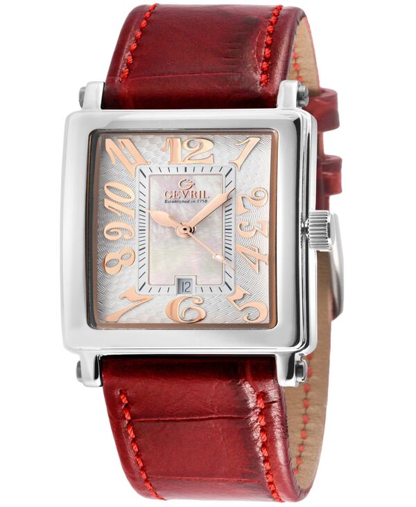 ジェビル レディース アクセサリー 腕時計 ミニ レザー Gevril Women's Avenue of Americas Mini Swiss Quartz Italian Red Leather Strap Watch 32mm Silver-Tone シルバー