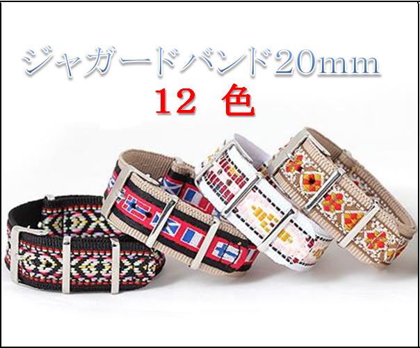 時計ベルト ジャガードベルト NATOベルト ナイロンストラップベルト ミリタリーベルト ジャガードストラップベルト 替えバンド【20mm】