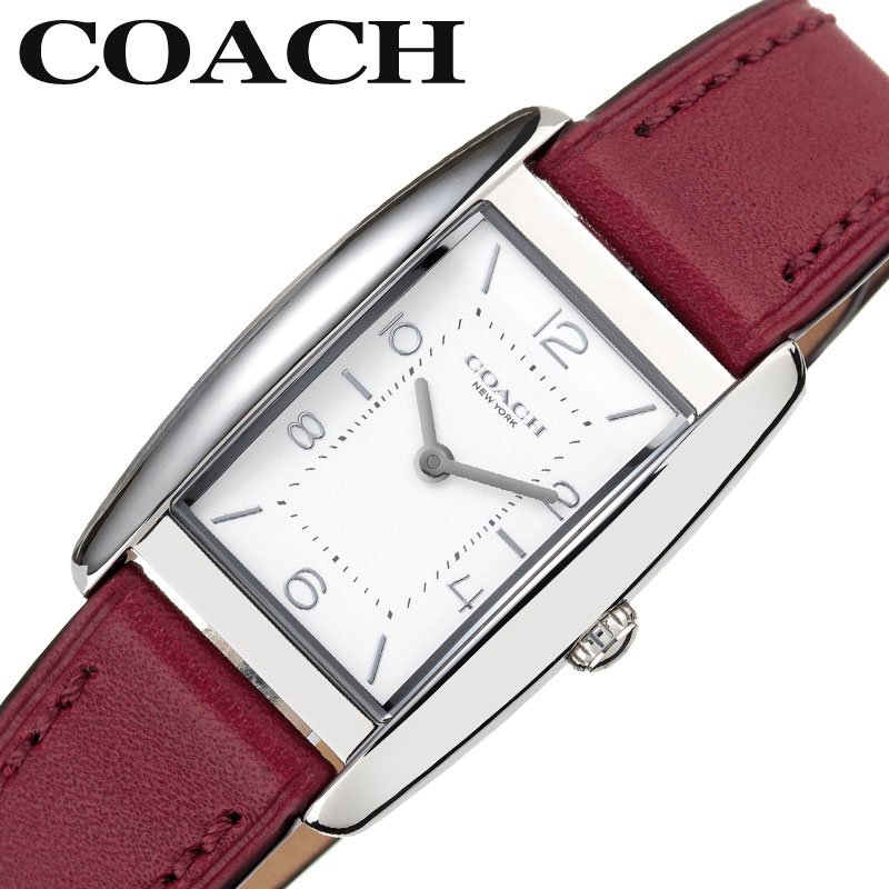 メーカー希望小売価格はメーカーサイトに基づいて掲載していますこの商品のお問い合わせ番号CPR-item-70494■ 商品詳細説明 コーチ[COACH]コーチは1941年、米国ニューヨークのマンハッタンのロフトにある家族経営の小さな工房でスタートしました。伝承された技術を持つ6人の熟練した皮革職人が、上質の革製品を手作りで仕上げてきました。高品質で個性あふれるCOACHの優れた技術は、感性の鋭いニューヨーカーを瞬く間に虜にしてきました。コーチはCOACH POPPYというブランドも立ち上げ、新たなアプローチも試みています。Coachは定番の財布やバッグ、ショルダーバッグ、キーケースなどで人気が高いブランドです。「リース」は、風防とステンレスケースに緩やかなカーブが施された、24mm×35mmのスクエアケースウォッチ。クリーンなサテン文字盤に、アラビア数字とスティックマーカーを配したシンプルな面持ちにレッドのベルトで華やかな印象を与えてくれます。ステッチが施されたレザーベルトでまとめられ、様々なシーンで着用することが可能です。 型番14504310ケース材質:ステンレススチールサイズ約:縦35×横24mm×厚:7.5mmベルト材質:レザーカラー:レッドムーブメントクォーツ機能風防:ミネラルガラス表示方式:アナログ2針形状:長方形(レクタンギュラー)防水機能防水性:日常生活用防水付属品COACH純正BOX保証書取扱説明書※説明書・保証書に関して入荷時期により仕様、内容が一部異なる場合がございます。また、※SDGs(環境問題)への取り組みの一環として、紙の説明書が付属しないブランドがございます。予めご了承くださいませ。