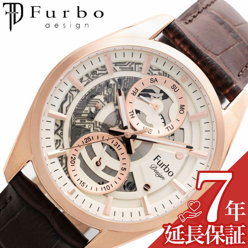 メーカー希望小売価格はメーカーサイトに基づいて掲載していますこの商品のお問い合わせ番号CPR-item-70478■ 商品詳細説明 フルボ デザイン[Furbo design]イタリアから生まれた人気ブランドフルボ。イタリアといえば派手めなデザインを想像するがシンプルを基調としながらも中身にもこだわりを持った腕時計。しかしフルボの名前の由来が[ずる賢さ]からきているところは遊び心も忘れないイタリア人ならでは。クラシックな味に隠れた遊び心あるセンスが楽しい、今大注目のブランドです!電子回路を彷彿とさせるセミスケルトンモデル。一見自動巻き化と見間違えるほど精巧に仕上がった文字盤のデザインが印象的。従来のフルボのスケルトンのイメージを持たせつつ、日常使いにも使える日付・曜日表示付き。電子部品のような回路のイメージがポイント。型番NF05W-PGBRケース材質:ステンレススチールサイズ約:径40mm×厚:11mmベルト幅:20mmベルト材質:レザーカラー:ブラウンムーブメントクォーツ (電池式)機能風防:ミネラルガラス押し込み式リューズマルチファンクション精度:月差±20秒日付・曜日表示防水機能防水性:日常生活防水付属品Furbo design純正BOX保証書取扱説明書※説明書・保証書に関して入荷時期により仕様、内容が一部異なる場合がございます。また、※SDGs(環境問題)への取り組みの一環として、紙の説明書が付属しないブランドがございます。予めご了承くださいませ。