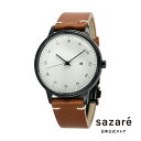 sazare さざれ 公式ストア 腕時計 メンズ ブランド レディース ウォッチ SK01 SS シルバー ホーニング フィニッシュ ブラック ダイヤル ベージュ カウレザー 革ベルト 本革 黒文字盤