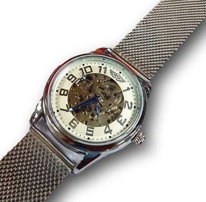 【送料無料】orologio da polso yk g3130 uomo analogico automatico moderno maglia silver lac