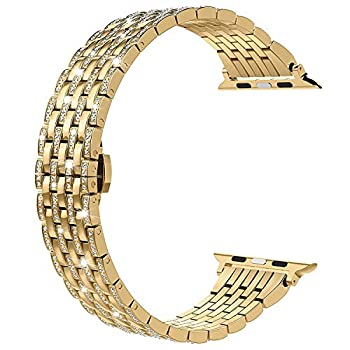 【中古】HJIN ラインストーン ダイヤモンド ウォッチバンド ステンレススチールバンド 交換用ストラップ Apple Watchシリーズ4 3 2 1に対応 42mm 44mm