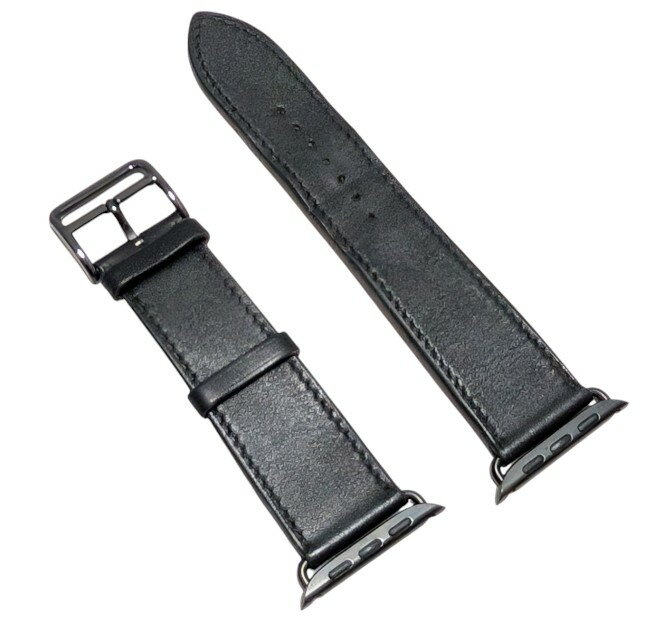 エルメス アップルウォッチ 時計用 ベルト レザー 35mm用 替えベルト ブラック 黒 尾錠付き メンズ レディース Apple Watch HERMES 【中古】