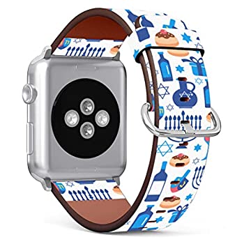 【中古】【輸入品・未使用】(ユダヤ祝日ハヌカーの挨拶) 柄付きレザーリストバンドストラップ Apple Watchシリーズ5/4/3/2/1 genと互換性あり iWatch 38mm/40mmバンド交換用
