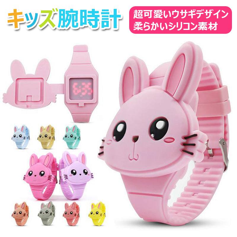 キッズ腕時計 子供用 デジタル腕時計 ウサギ うさぎ LED フリップカバー シリコン製 動物 女の子向け 小学生 ◇ALW-WATCH-RB【メール便】 | キッズ 女の子 腕時計 子供 デジタル シリコン ウォッチ 生活防水 男の子 入学祝い 小学校 時計 プレゼント 誕生日 卒園 プチギフト