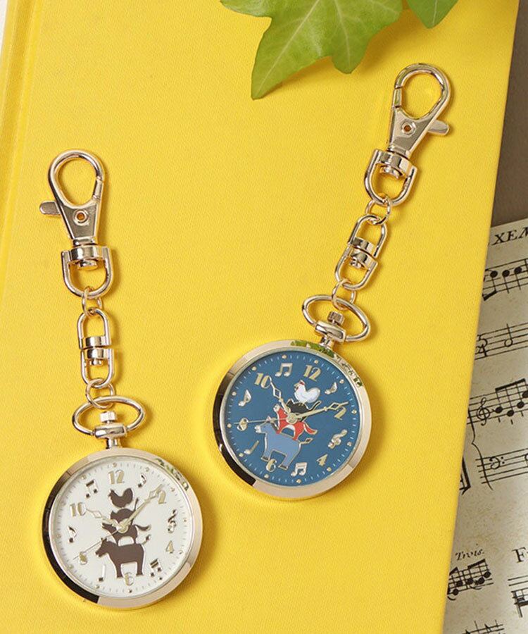 懐中時計 キーホルダーウォッチ レディース 秒針 ブレーメンの音楽隊 グッズ 動物 アニマル 音符 ゴールド フレーム おしゃれ かわいい 子供 ギフト プレゼント ホワイト 白 ブルー 青 ブルーブルーエ bleubleuet